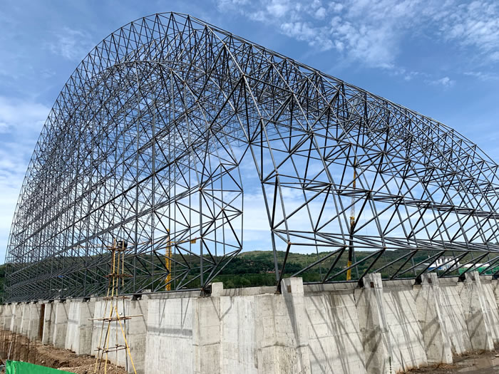 (2)网架加工前应对现场尺寸进行复测,确认无误后方可进行加工、安装;网架制作、运输、安装应遵守《空间网格结构技术规程》JGJ7-2010、《钢网架宿迁螺栓球节点》JG/T 10-2009、《钢网架宿迁螺栓球节点用高强度螺栓》 GB/T 16939-2016、《宿迁钢结构宿迁工程宿迁施工规范》 GB50755-2012、《宿迁钢结构宿迁工程施工质量验收标准》 GB50205-2020。