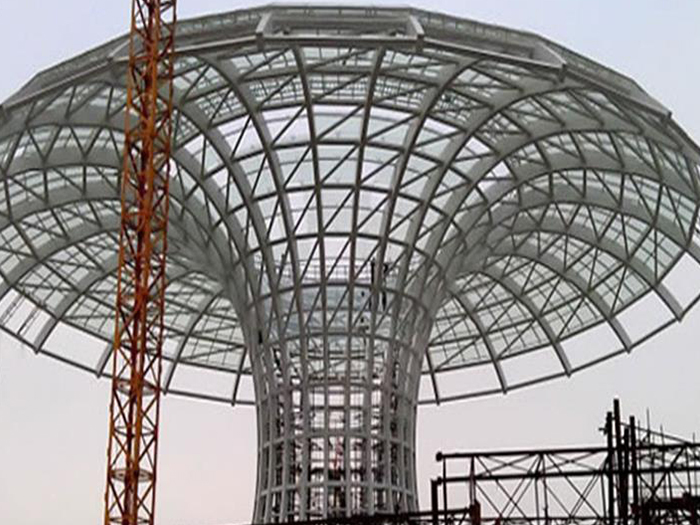 二、球形网架结构因其结构新颖,受力合理,自重轻、用钢量低等优点。如大型体育场馆球形宿迁螺栓球网架、公共场馆球形网架、电厂宿迁螺栓球网架、水泥工业球形网架、仓储物流球形网架、宿迁干煤棚工业球形网架、宿迁收费站宿迁加油站球形网架、展览中心、影剧院、商场、航站楼、候车厅、工厂宿迁车间、仓库、电视塔等球形螺栓球节点网架。国内球形网架结构主要分为:宿迁焊接球节点网架及螺栓球节点网架两种。螺栓球节点网架其构件工厂内加工量较大,现场安装便捷,适用于现场工期紧,宿迁施工条件、用电量受制约,网架形状复杂、宿迁杆件定位困难的异形结构。螺栓球节点球形网架系统基本由宿迁杆件、螺栓球、支撑支座等组成。按照节点形式可分为交叉宿迁桁架体系、四角锥体系、三角锥体系等。支撑方式多为固定支座支撑。对于大面积、大跨度及有特殊受力或伸缩要求的网架结构可采用橡胶支座、滑移支座、球铰支座等支撑形式,以满足结构自身的受力稳定、均衡,便于内力释放等设计要求。